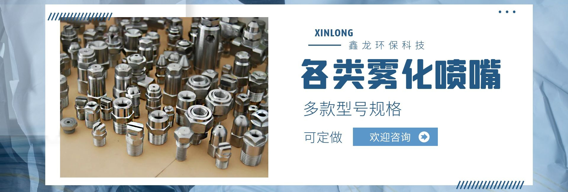 深圳市鑫龍環(huán)保科技有限公司是專業(yè)從事各類噴嘴研制和開發(fā)的廠家,技術(shù)力量雄厚,生產(chǎn)工藝先進(jìn),檢測手段齊全,管理制度嚴(yán)格,產(chǎn)品質(zhì)量穩(wěn)定可靠。產(chǎn)品種類多達(dá)上萬種,適用于涂裝處理、環(huán)保、線路板、電子電力、汽車制造、家電制造、造紙業(yè)、紡織業(yè)、防火等行業(yè);我公司產(chǎn)品不僅為國內(nèi)多家大中型企事業(yè)選用,還配套外銷日本、美國、東南亞等國家和地區(qū)。我們具有本行業(yè)前衛(wèi)的噴嘴制造設(shè)施,在我們裝備完善的噴嘴實驗室,可以進(jìn)行各種類型噴嘴的測試研究,以優(yōu)化噴霧系統(tǒng)的性能。我公司提供專業(yè)技術(shù)、應(yīng)用和售后服務(wù),幫助用戶選擇適合的噴嘴,并保持噴嘴在良好條件下運行。從噴嘴選擇指導(dǎo),到量身定制的設(shè)計,直到噴霧顆粒的測試分析,在每個訂單中都包含了我們好的技術(shù)支持,用戶反映:我司顯著的特點是銷售工程師在幫助用戶降低成本、減少加工和維修時間,降低工業(yè)用水和化學(xué)劑消耗等方面有著非常豐富的經(jīng)驗,使用戶可以更經(jīng)濟、更有效的解決實際問題!我們繼續(xù)堅持專業(yè)是金的理念,制造好的噴嘴是我們永遠(yuǎn)的追求和努力!