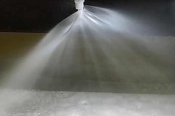 2021.6.3 礦山石料破碎除塵噴霧工程,深圳市鑫龍環(huán)保科技有限公司噴霧除塵(超聲霧化除塵)是最簡便和最經(jīng)濟的除塵方式,并且除塵效果良好。噴霧除塵是將水霧化處理成許多高速運動的密集細(xì)小水滴,是借助壓縮空氣沖擊共振腔產(chǎn)生的超聲波,利用超聲波將水霧處理成濃密的微細(xì)霧滴,這些微細(xì)霧滴在相對密閉的空間內(nèi)可以捕獲、凝聚微細(xì)粉塵,使得微細(xì)粉塵的黏性、濕度和比重顯著增加,進(jìn)而使得粉塵迅速沉降下來,逐漸實現(xiàn)除塵的目的。